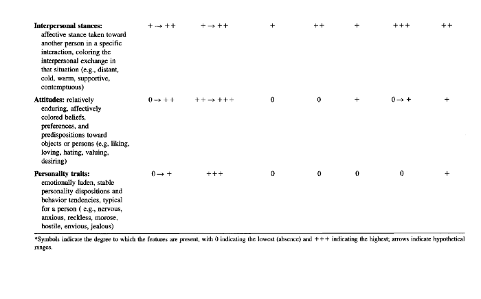 Perbedaan di antara ketiganya dapat membantu kita dalam melacak bagaimana momen-momen temporal dari ketika kita terpengaruh (misal: jadi gak sabaran) kemudian menjadi suatu sikap emosional tertentu (misal: jadi mudah marah)
